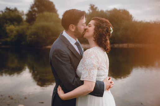 After the beautiful confetti toss and family portraits, Fran & Rebecca stole a quiet moment just for themselves. In the soft golden light of sunset, by the river, they captured romantic memories that they would one day share with their expected baby—a moment of pure love and anticipation.
